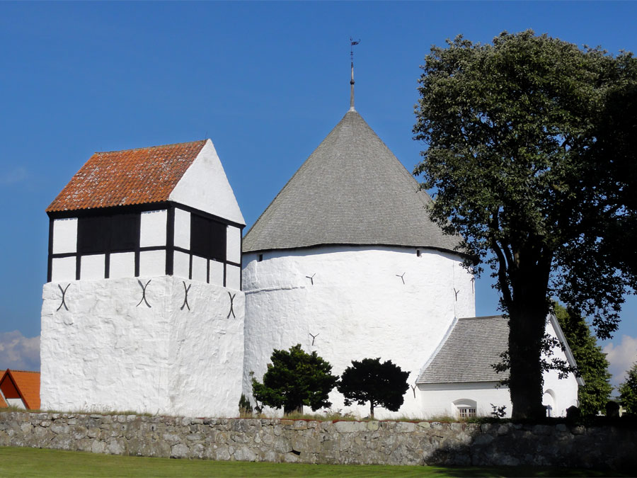 Nylars Kirke, pod wezwaniem św. Mikołaja – patrona żeglarzy i rybaków – to najlepiej zachowana rotunda na Bornholmie. Jej surowa, romańska bryła z XII wieku do dziś robi duże wrażenie.